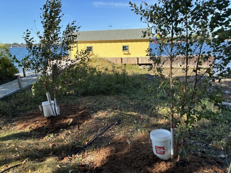 Inspired by St. Paul’s in Brunswick, on Oct. 2, before closing up our cottage on an island in the Saint Lawrence Seaway, I planted two Betula Nigras.